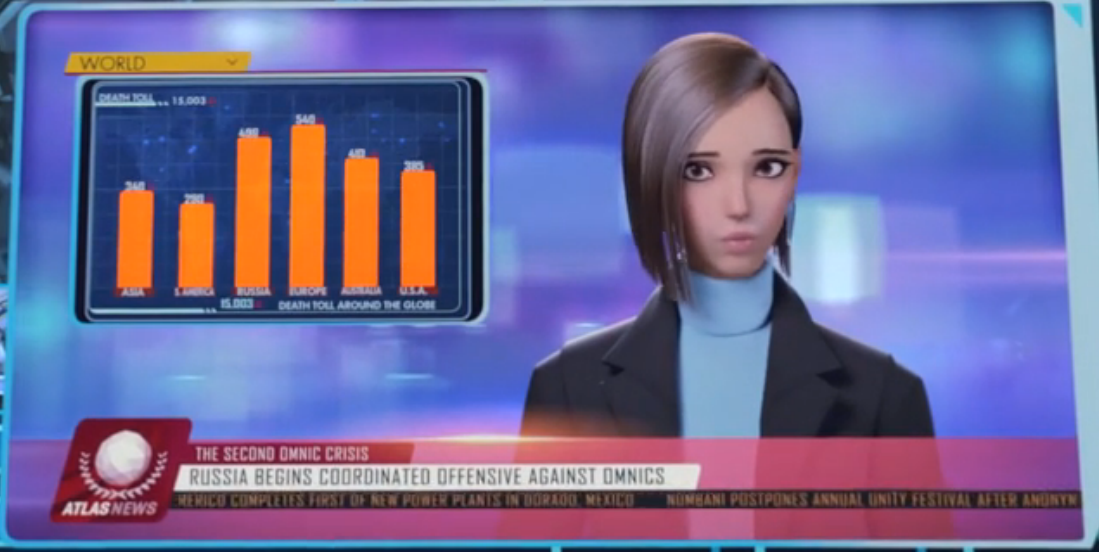 镜头推进,并通过新闻播报交代情况。第二次智能危机肆虐,死了一万五千人。