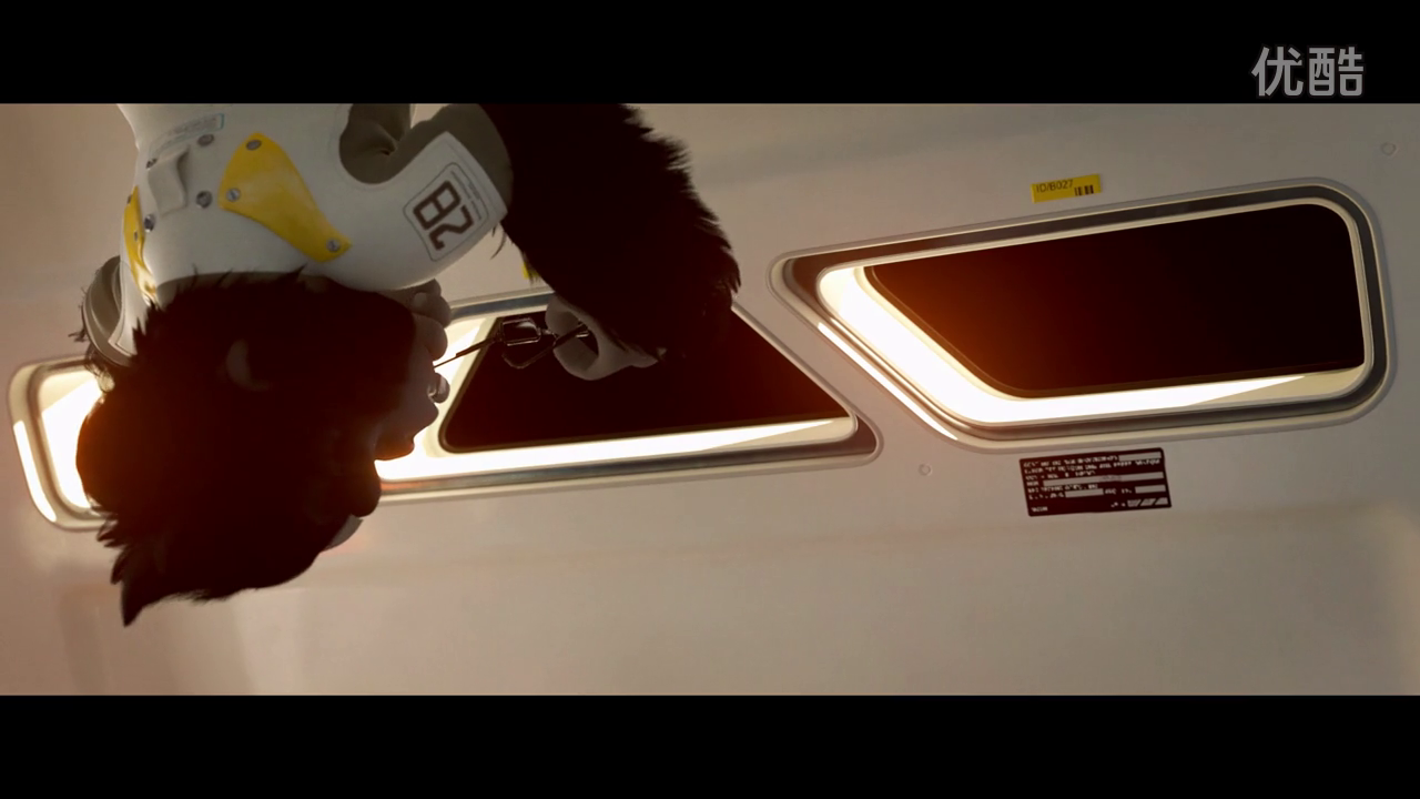 眼镜中有一道白色的东西快速飞过。吸引了猩猩的注意力。